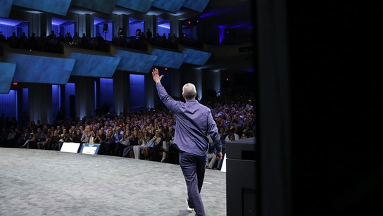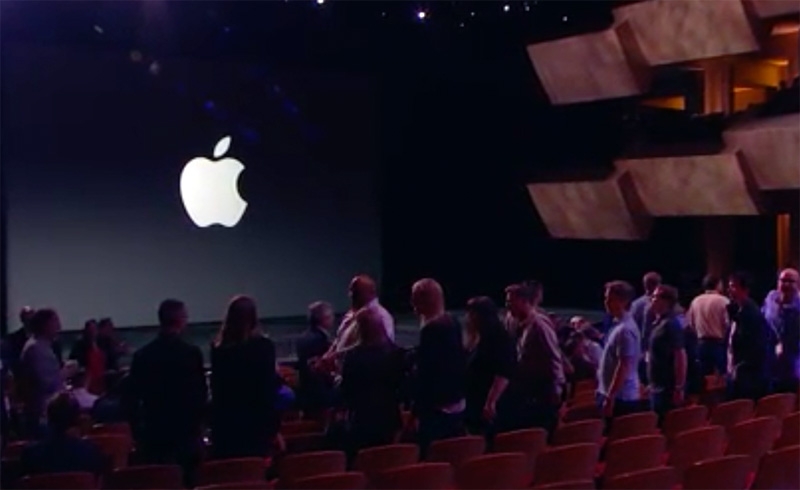 20:55 В ожидании презентации публика собралась в большом зале, который больше напоминает театр. Это мероприятие, в отличие от большинства предыдущих, посетило много знаменитостей, в том числе из мира моды. Среди прочих можно упомянуть известного актёра Стивена Фрая (Stephen Fry) или певицы Гвен Стефани (Gwen Stefani). Считается, что это обусловлено предстоящим запуском носимой электроники купертинской компании.